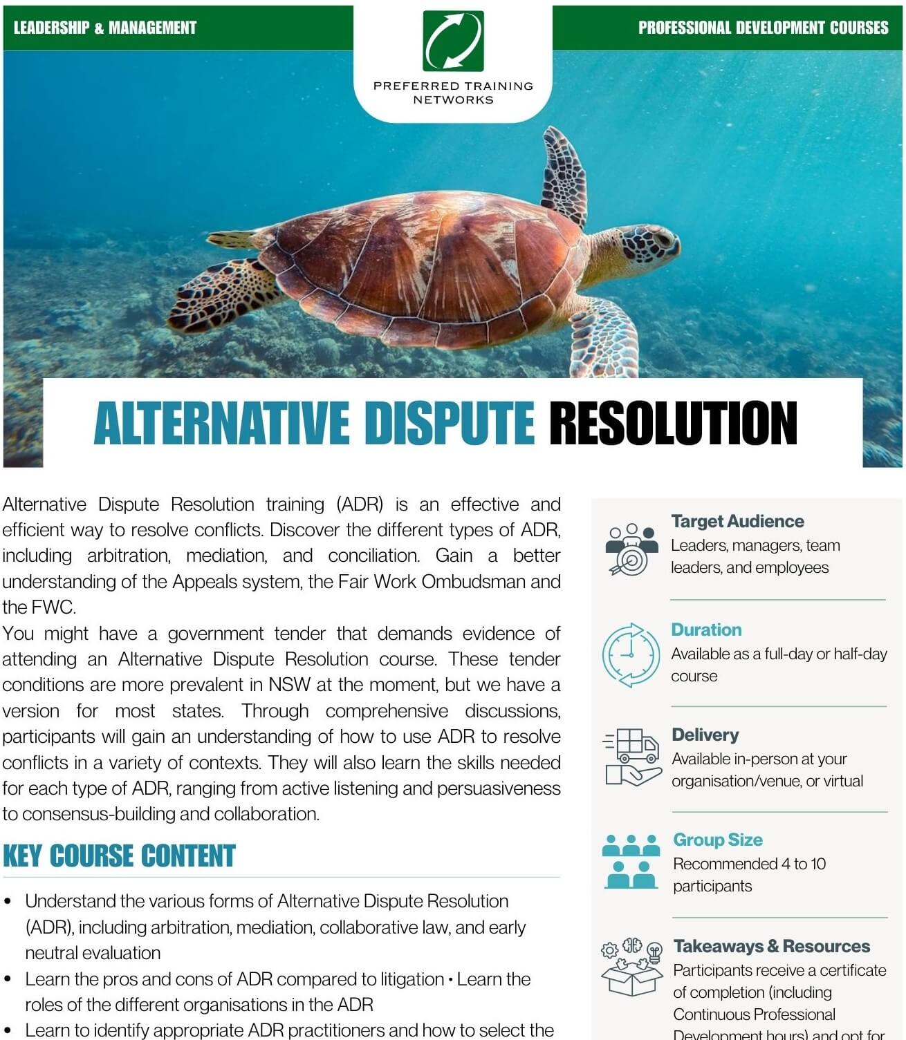 Start mastering the skills needed to manage conflicts successfully-contact Preferred Training Networks today. Whether in major cities or regional areas, we offer in-person and online training programs across Australia to ensure accessibility for everyone. Learn more about our courses and how they can benefit your organisation.