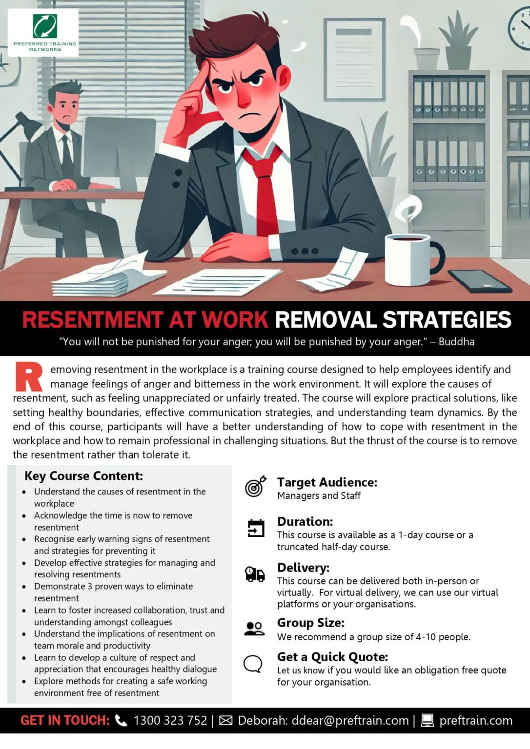 If you would like more information on this training program, please contact: Deborah Dear on 1300 323 752 or email: [email protected] or contact us online today.