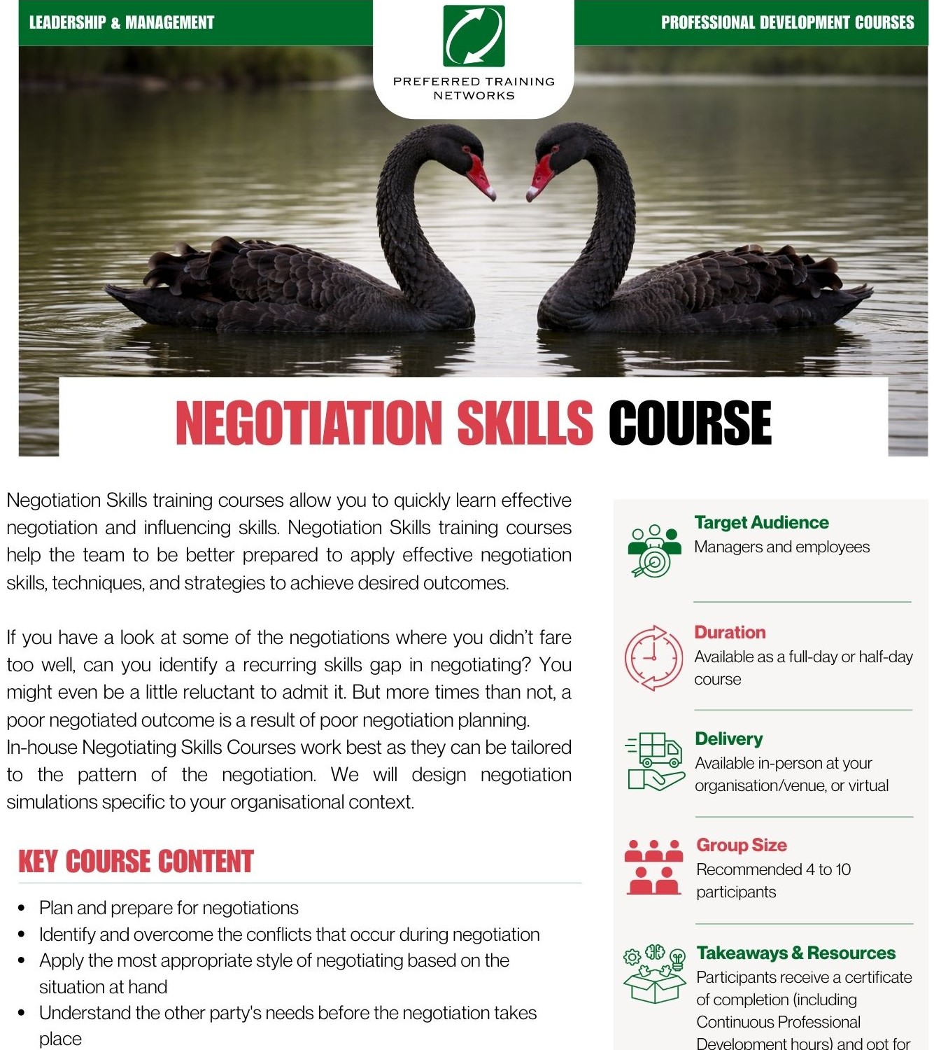 Duration: Your Negotiation Skills course can be modified to fit inside your timeframe.
