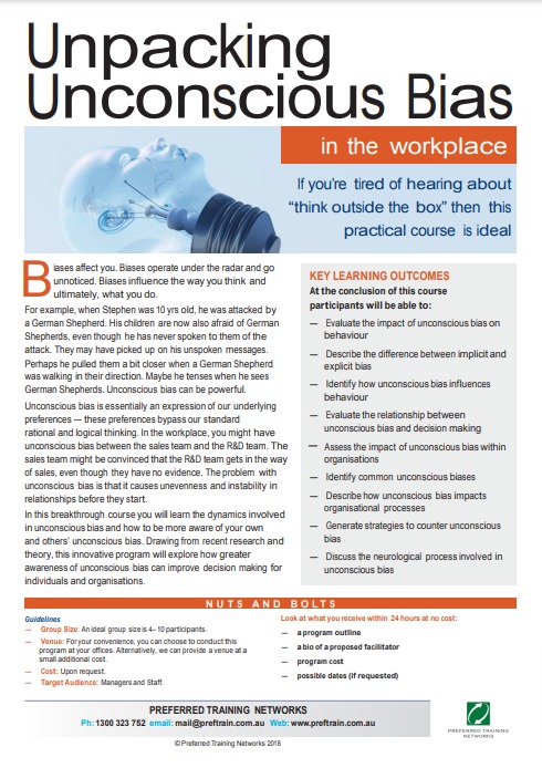 If you would like more information on this training program, please contact: Preferred Training Networks on 1300 323 752 Email: Deborah [email protected]