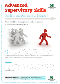 Advanced supervisor skills tailored in-house workshops work best. We’ll build the course to piggyback off any other professional development training that the group has completed.