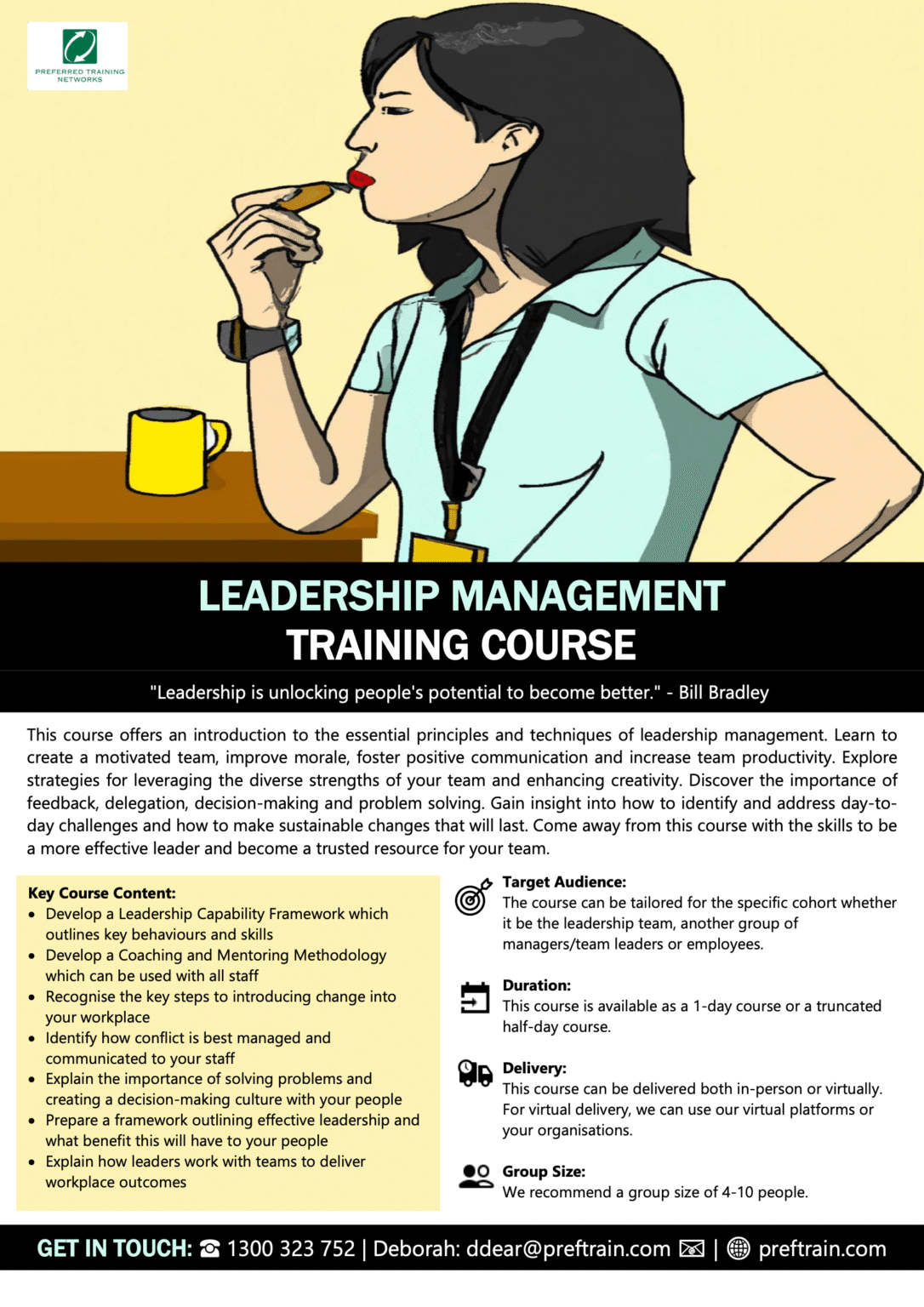 Your tailored Leadership Management workshop will provide participants with the skills to: