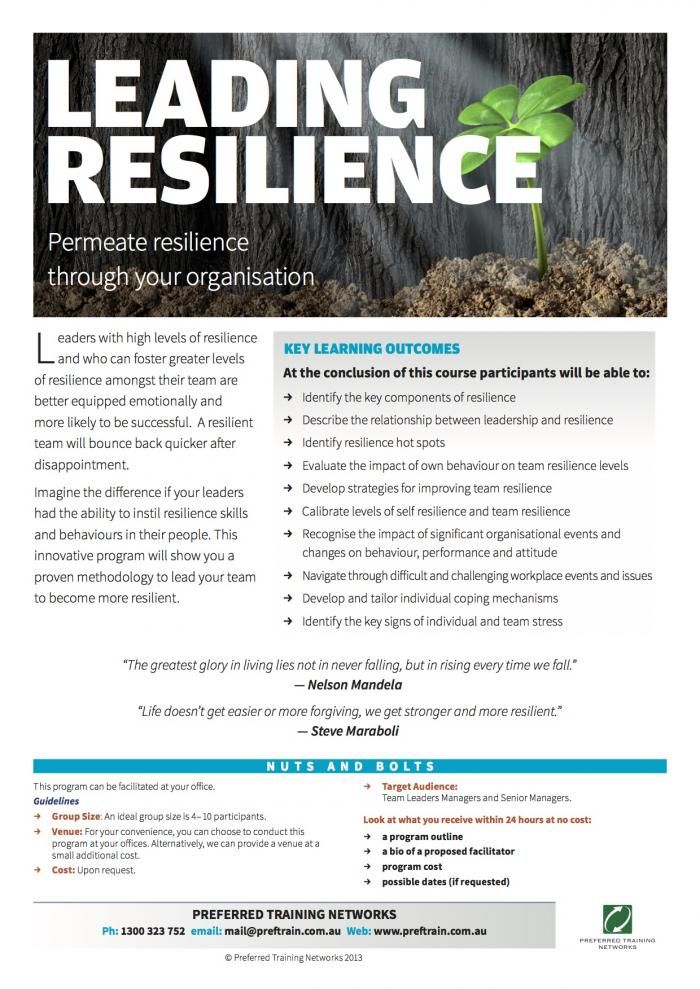 So if you haven’t jumped on board yet with resilience training don’t miss out. “Team Resilience” and “Leading Resilience” are also options to spread the good vibe.